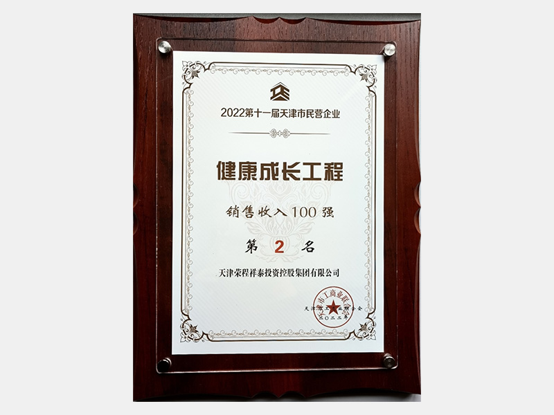 2022第十一屆天津市民營企業(yè)健康成長工程銷售收入100強(qiáng)第2名