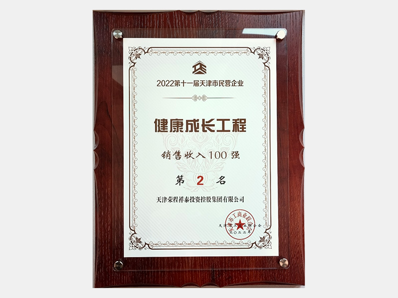 2022第十一屆天津市民營(yíng)企業(yè)健康成長(zhǎng)工程銷售收入100強(qiáng)第2名
