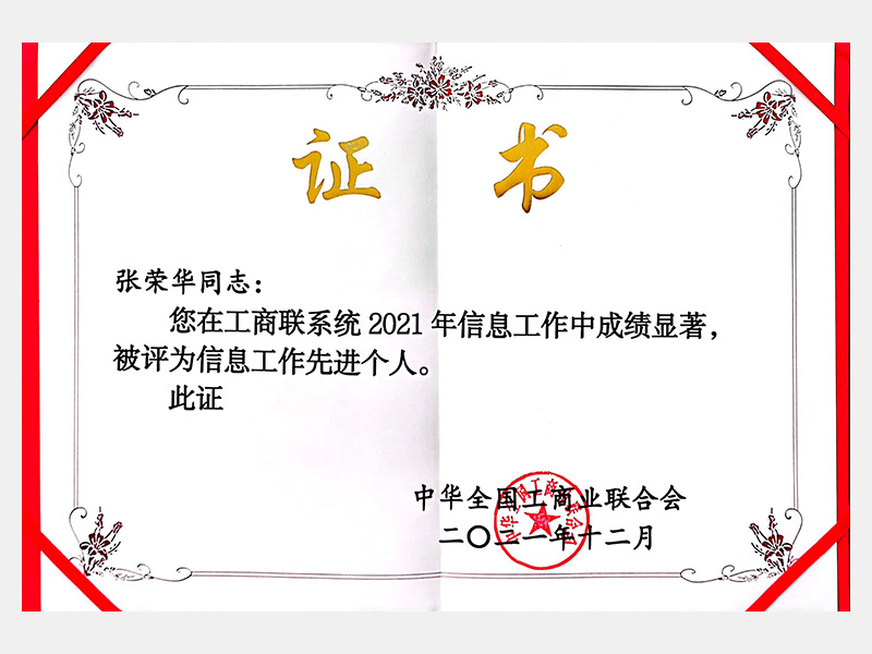 您在工商聯(lián)系統(tǒng)2021年信息工作中成績顯著,被評為信息工作先進(jìn)個人。