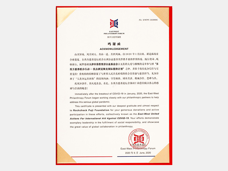 參與“東西方慈善聯(lián)合行動-抗擊新冠肺炎國際援助計劃”鳴謝函