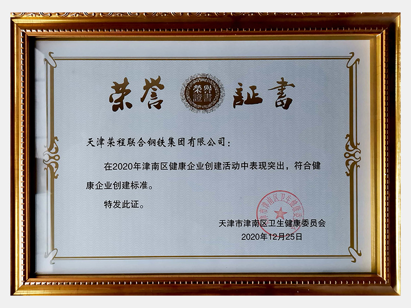 在2020年津南區(qū)健康企業(yè)創(chuàng)建活動中表現(xiàn)突出,符合健康企業(yè)創(chuàng)建標(biāo)準(zhǔn)。特發(fā)此證