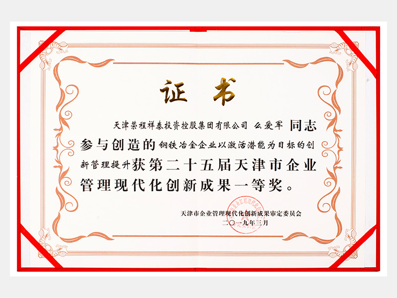 么愛軍同志參與創(chuàng)造的鋼鐵冶金企業(yè)以激活潛能為目標的創(chuàng)新管理提升獲第二十五屆天津市企業(yè)管理現(xiàn)代化創(chuàng)新成果一等獎。