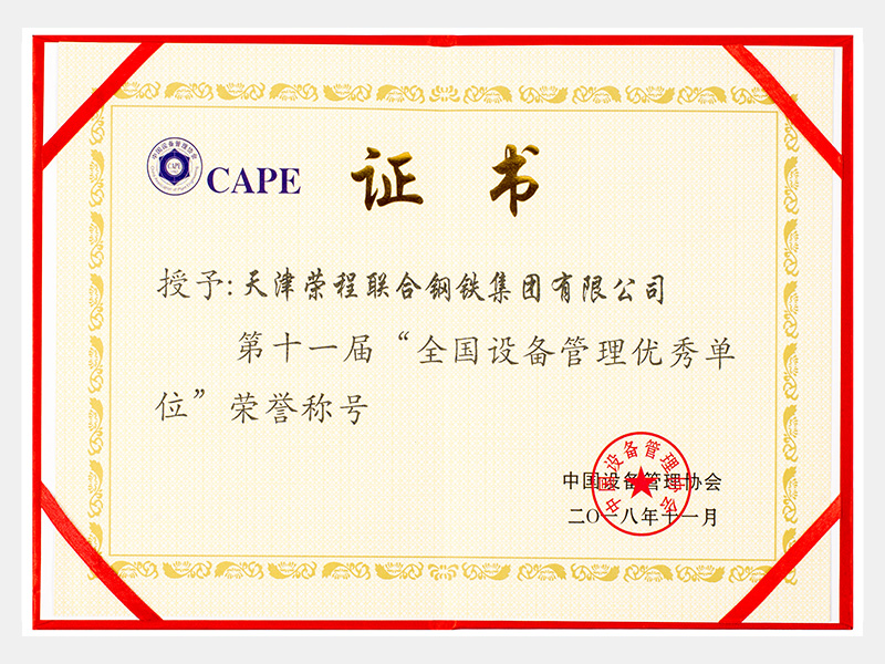 第十一屆“全國(guó)設(shè)備管理優(yōu)秀單位”榮譽(yù)稱號(hào)
